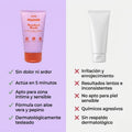 ⚠️ Advertencias: evitar en piel sensible sin prueba previa. Si comienza la irritación, retirá la crema de inmediato y enjuagá con agua fría. No dejar más de 7 minutos.